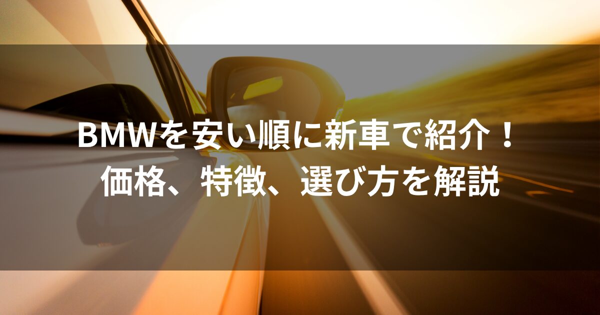 BMWを安い順に新車で紹介!価格、特徴、選び方をわかりやすく解説
