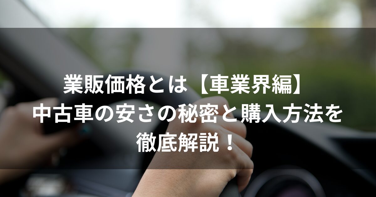 - 業販価格とは、中古車販売店などが仕入れに利用する「業者向けの特別価格」である。